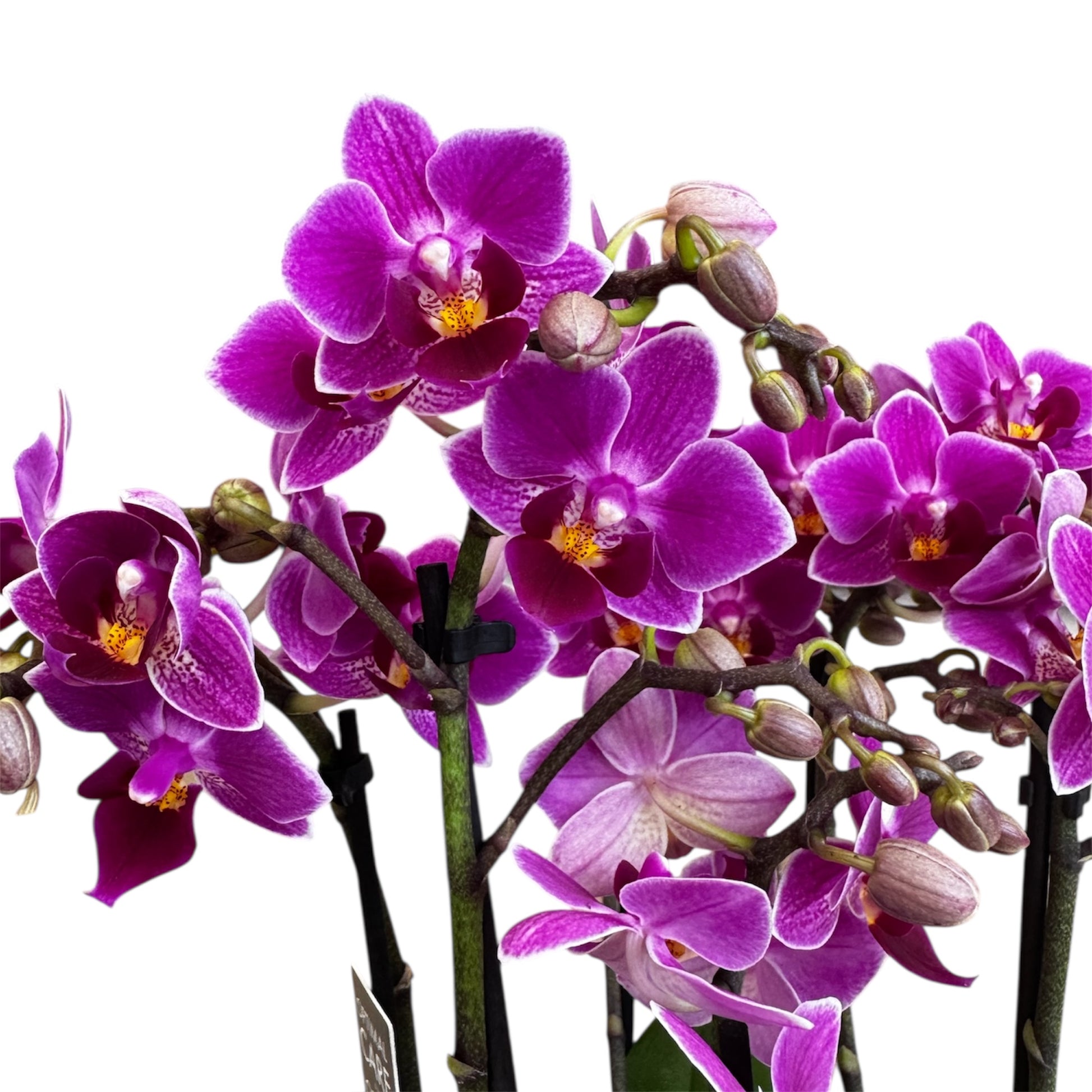 The Phalaenopsis Orchid ‘Tiny Doll Fay Duetto’ is a compact and elegant orchid featuring two beautiful plants in one pot. Each plant produces multiple spikes of bright purple blooms with delicate patterned petals, creating a stunning and long-lasting floral display. With its smaller size and rich colour, this orchid is ideal for windowsills, shelves, desks, or as a thoughtful gift.